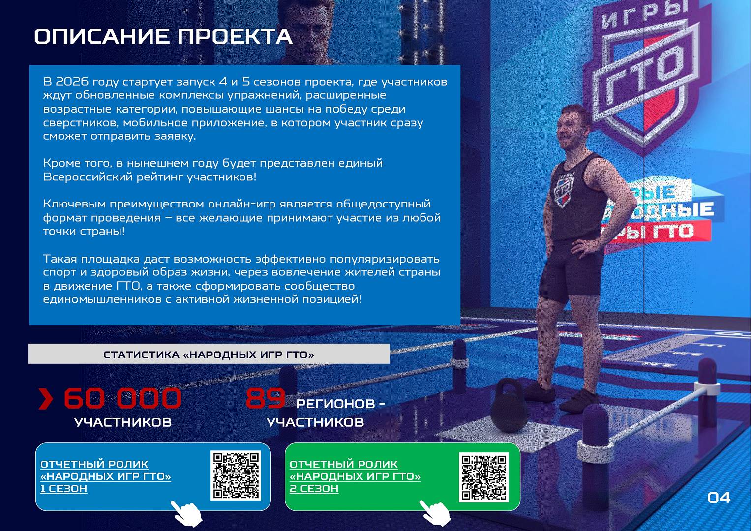 За прошедшие сезоны в нем приняли участие более 60 тысяч человек, что свидетельствует о его масштабности и востребованности. Уникальность Проекта заключается в его онлайн-формате, позволяющем каждому желающему, начиная с 6-летнего возраста, испытать свои силы и приобщиться к миру спорта.